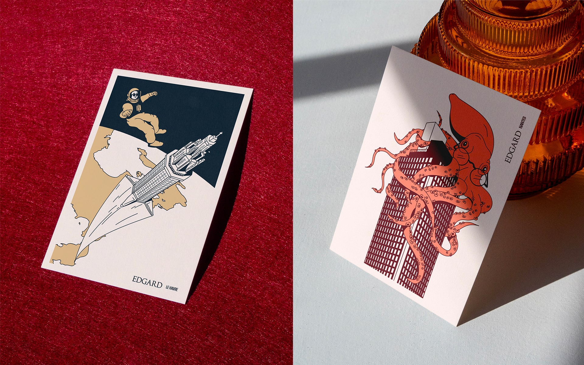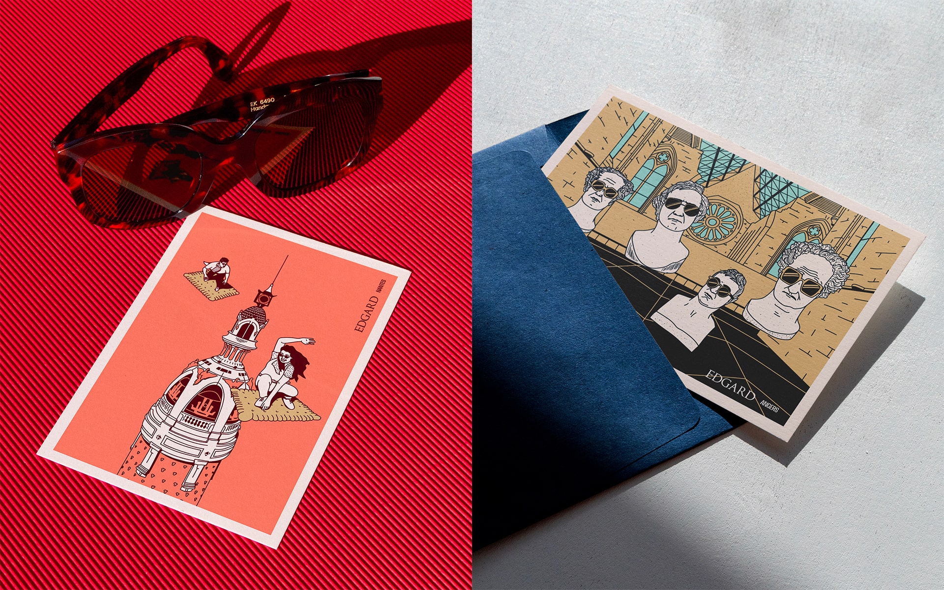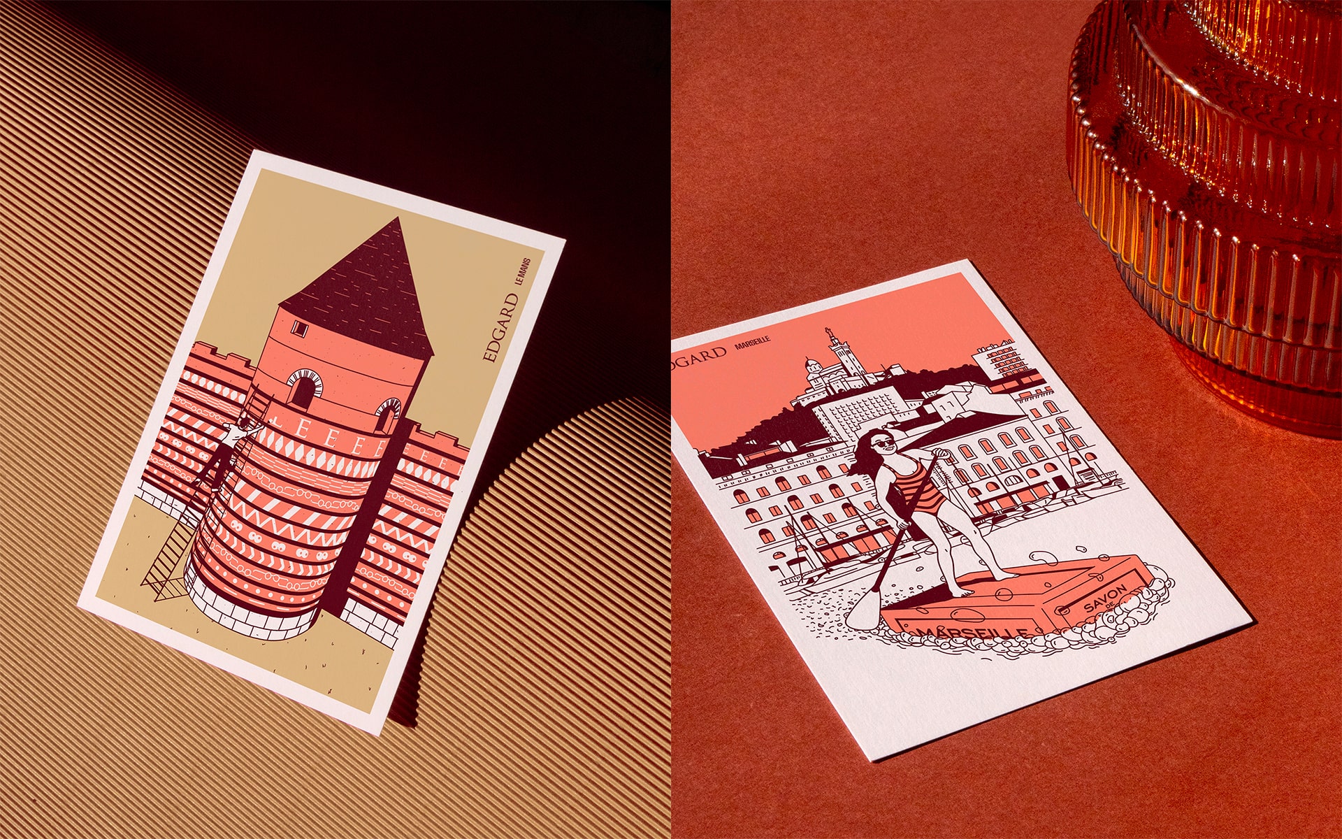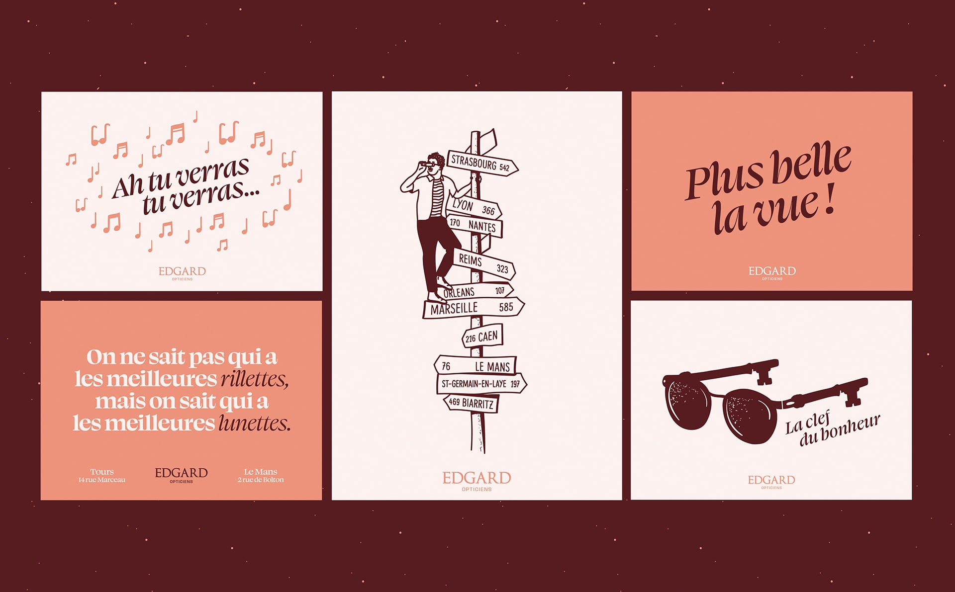 Edgard est une famille d’opticiens engagés et passionnés qui ne cesse de s’agrandir depuis sa création en 2001 à Tours. Aujourd’hui, tous les chemins mènent chez Edgard, que l’on retrouve dans une dizaine de villes françaises. Même si les boutiques ont toutes en commun d’être des lieux chaleureux et humains, chacune d’entre elle est unique car profondément marquée par la culture de sa ville et la proximité avec ses habitants. Être unique, c’est aussi ce qui caractérise les clients d’Edgard dont les montures pleines de caractère révèlent la personnalité de chacun. Cette série d’illustrations mettant en scène les villes du réseau Edgard ont été réalisées dans le cadre du rafraichissement de l’identité visuelle du groupe.